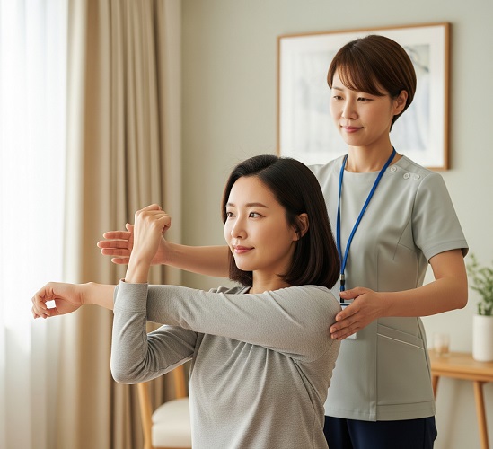 - 하루 2~3회, 팔/어깨 가동 범위 운동