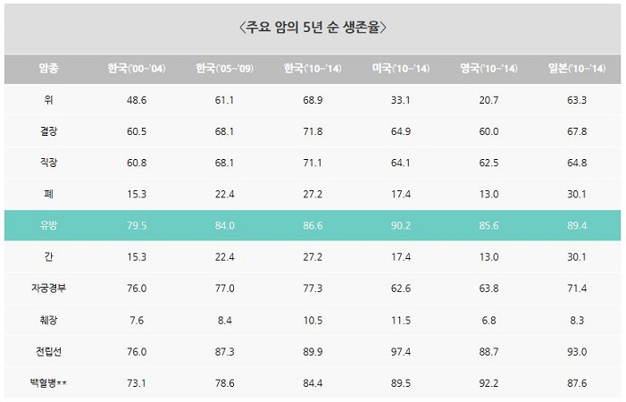 '유방암의 5년 순 생존율 국제비교'에 따르면